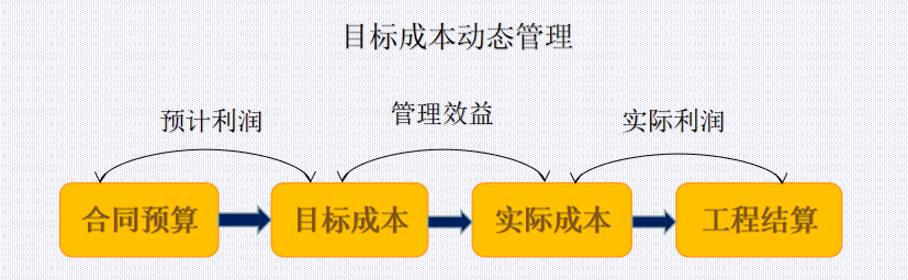 傳統的項目成本發生過程包括合同預算→目標成本→實際成本→工程結算