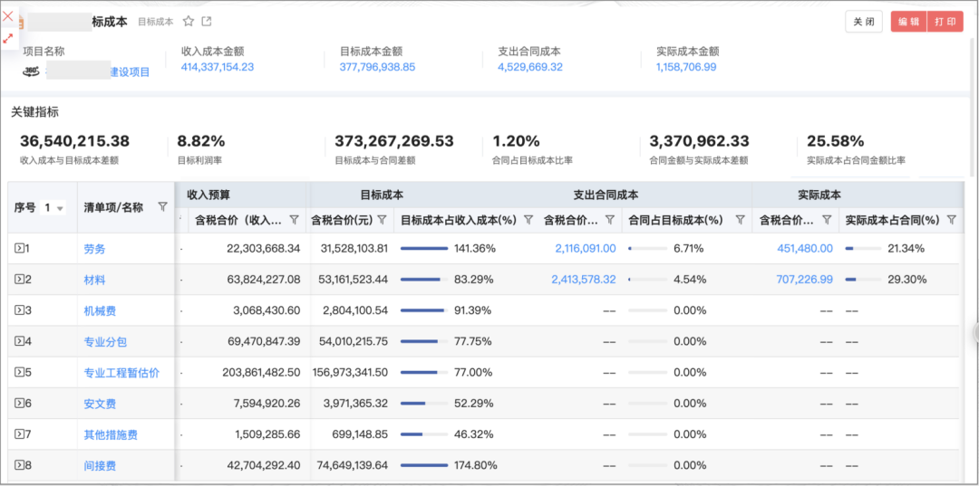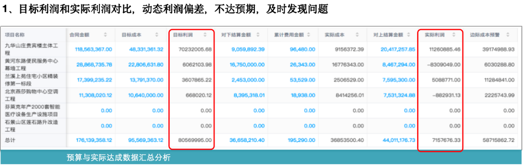通過紅圈系統,在過程中可以實時看到人、材、機等各項成本發生是否合理, 項目利潤是否達預期,過程中出現風險能夠及時解決和控制,后期也可以對單個項目去做成本分析。