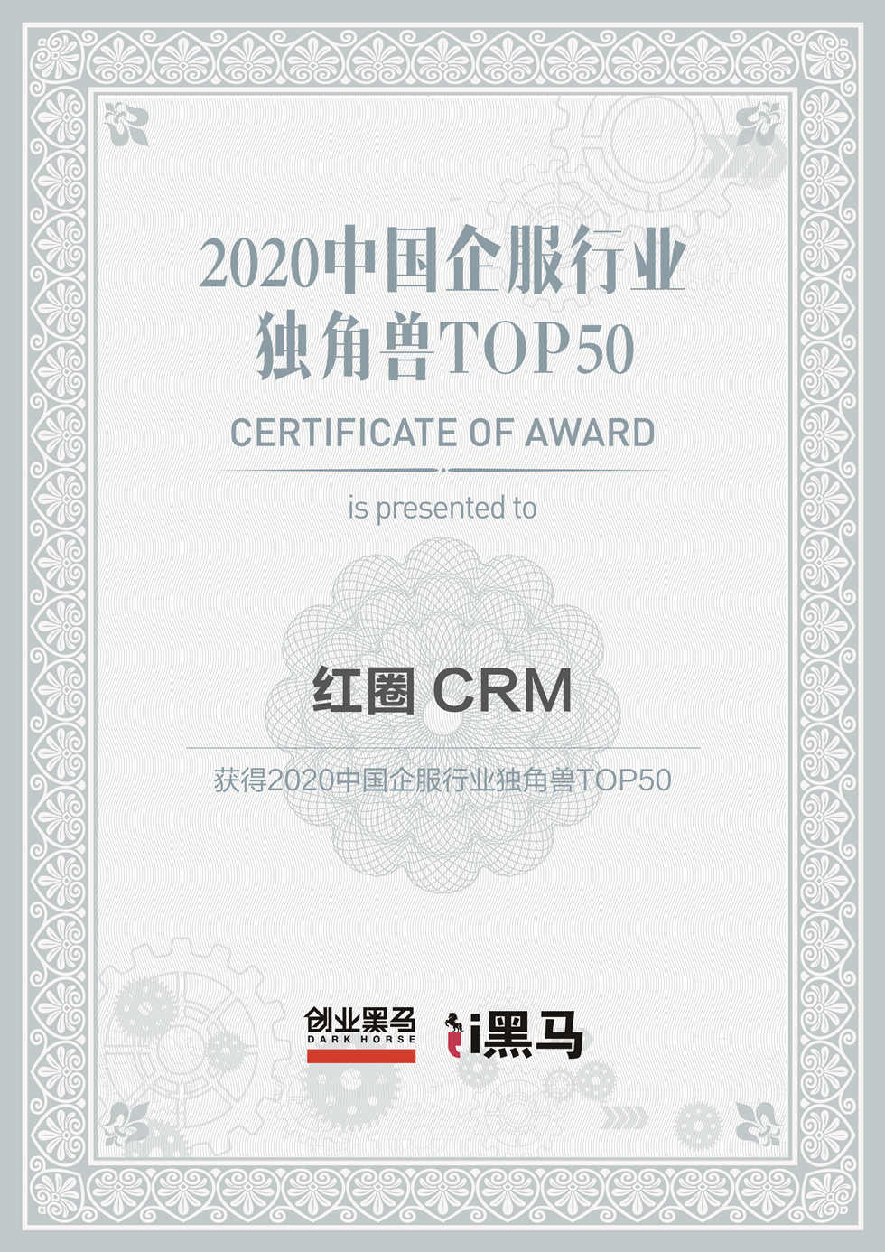 > 資源中心 > 官方博客 > 公司新聞 > 紅圈?CRM?榮登《2020?中國企服行業獨角獸?TOP50》