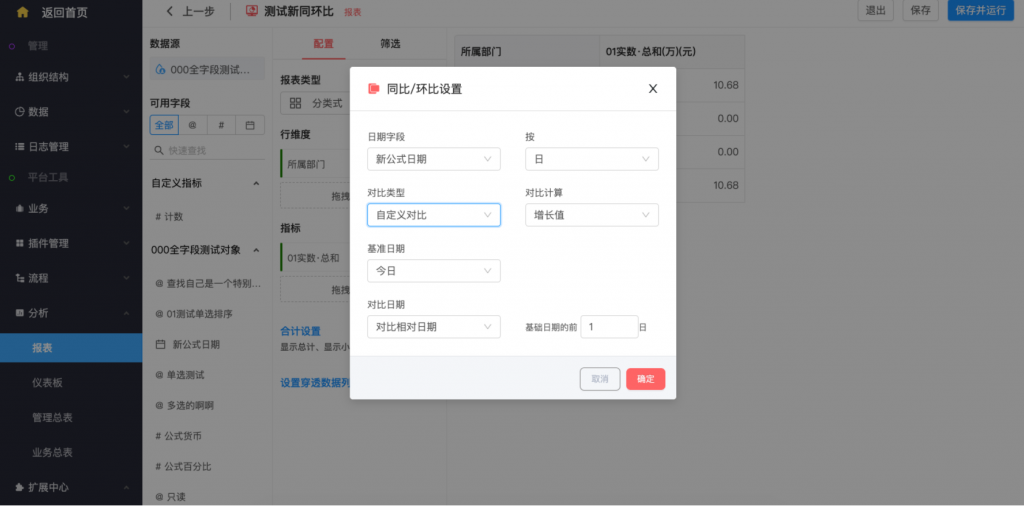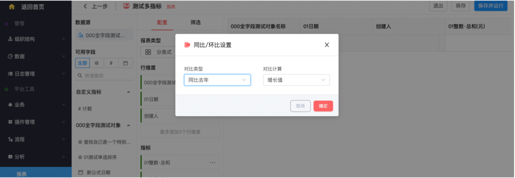 - 具有時(shí)間維度的同環(huán)比設(shè)置,可配置同比
