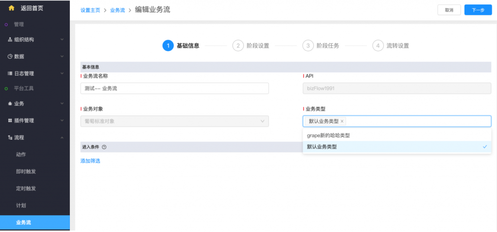 - 后臺(tái)編輯業(yè)務(wù)流配置時(shí),支持編輯業(yè)務(wù)類型;