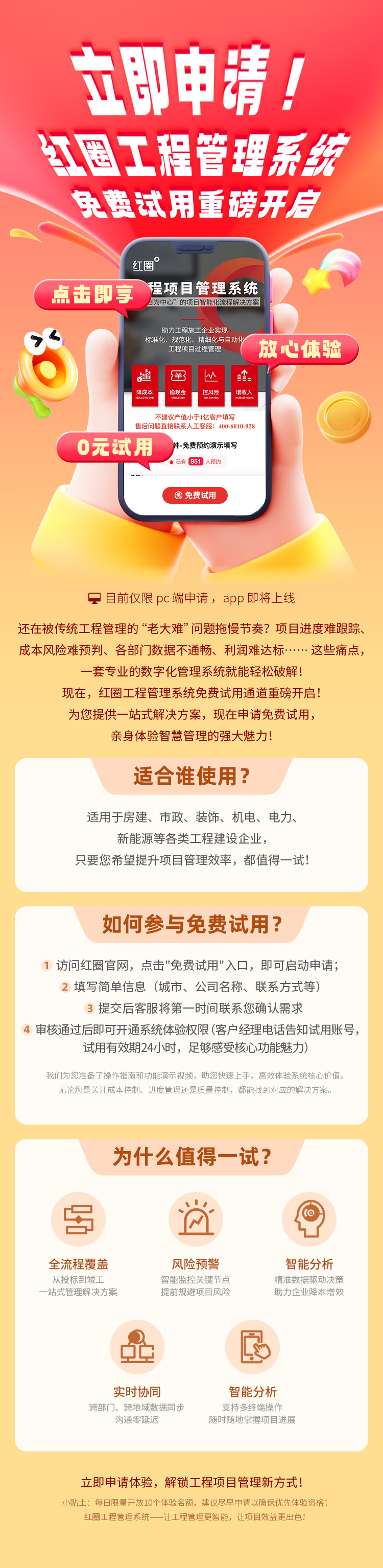 - 立即申請!紅圈工程管理系統(tǒng)免費試用重磅開啟!
