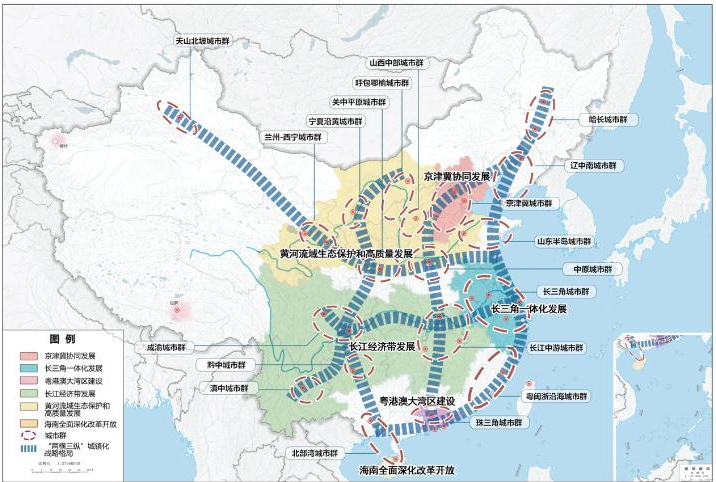 1)優化提升京津冀、長三角、珠三角、成渝、長江中游等城市群;