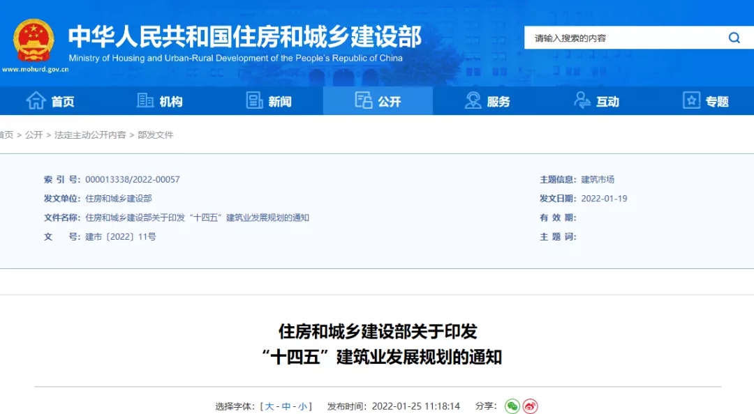 近日,住建部發(fā)布《住房和城鄉(xiāng)建設(shè)部關(guān)于印發(fā)“十四五”建筑業(yè)發(fā)展規(guī)劃的通知》。其中主要任務(wù)之一就是要加快智能建造與新型建筑工業(yè)化協(xié)同發(fā)展。