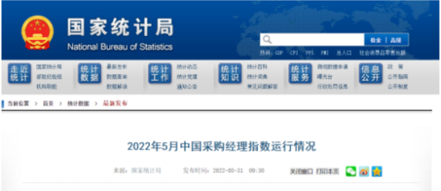 近日,國(guó)家統(tǒng)計(jì)局發(fā)布2022年5月中國(guó)采購(gòu)經(jīng)理指數(shù)運(yùn)行情況。