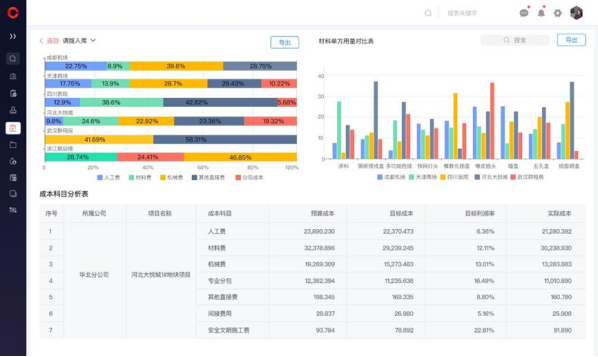 動態(tài)看板:集中展示成本、進度、資源等核心指標,管理者可一鍵定位問題環(huán)節(jié)。